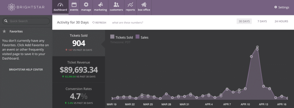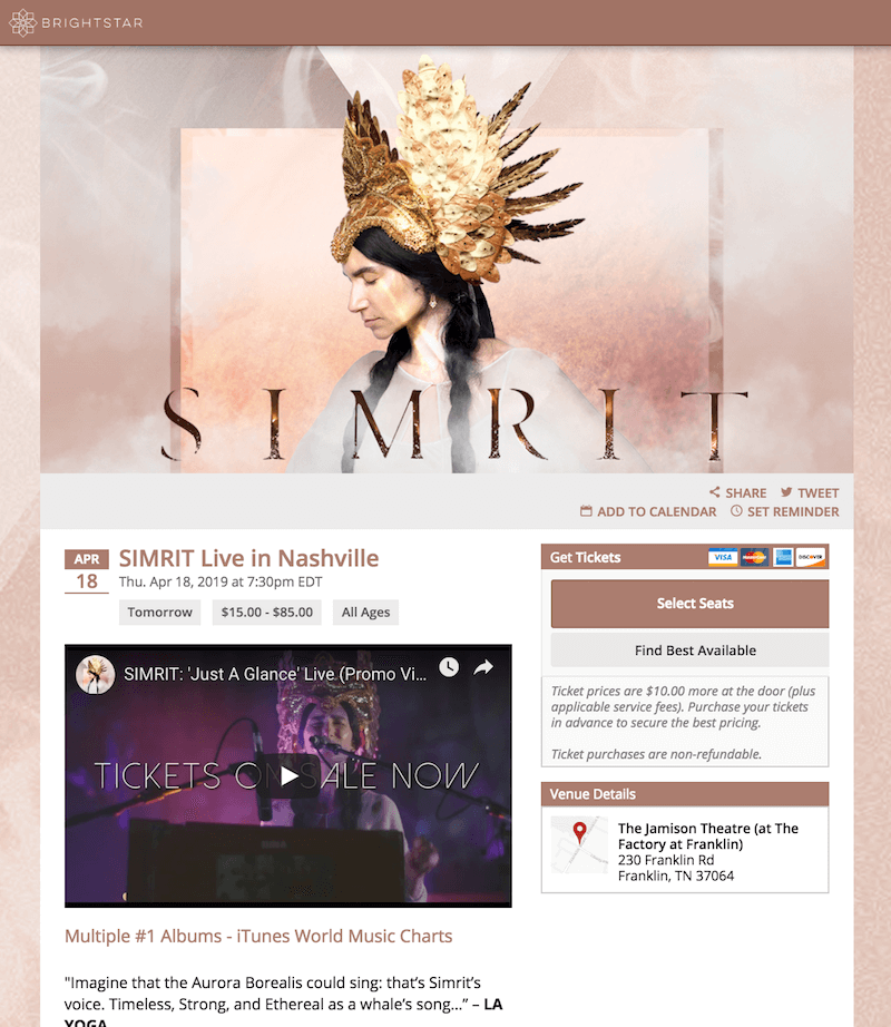 Want to keep the purchase process contained within your website? BrightStar gives you the tools to sell tickets directly on your website.